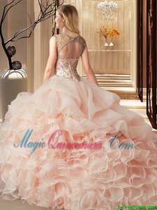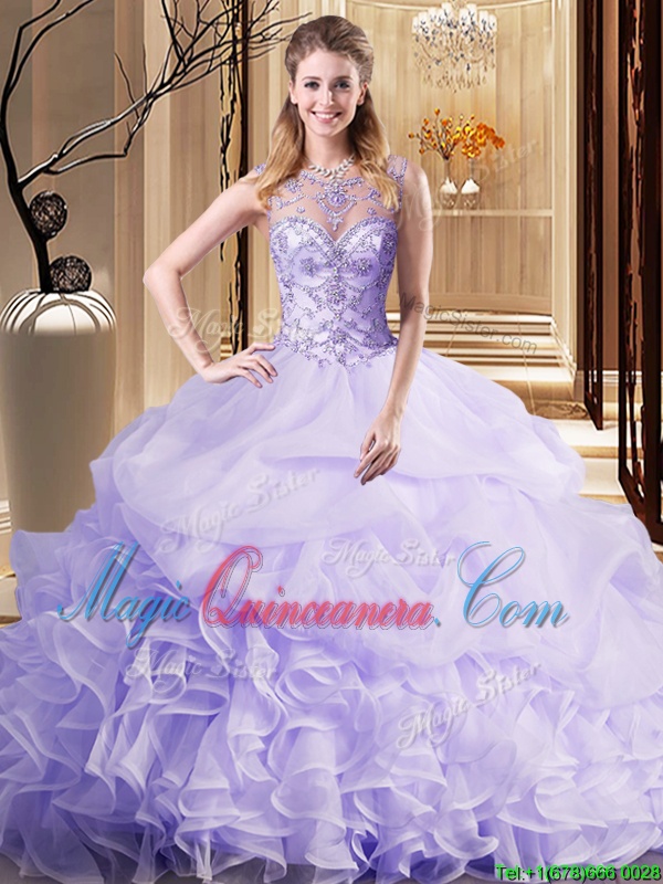 Glamorous Scoop Lavender Sleeveless Beading and Ruffles and Pick Ups Lace Up Quinceanera Gowns