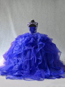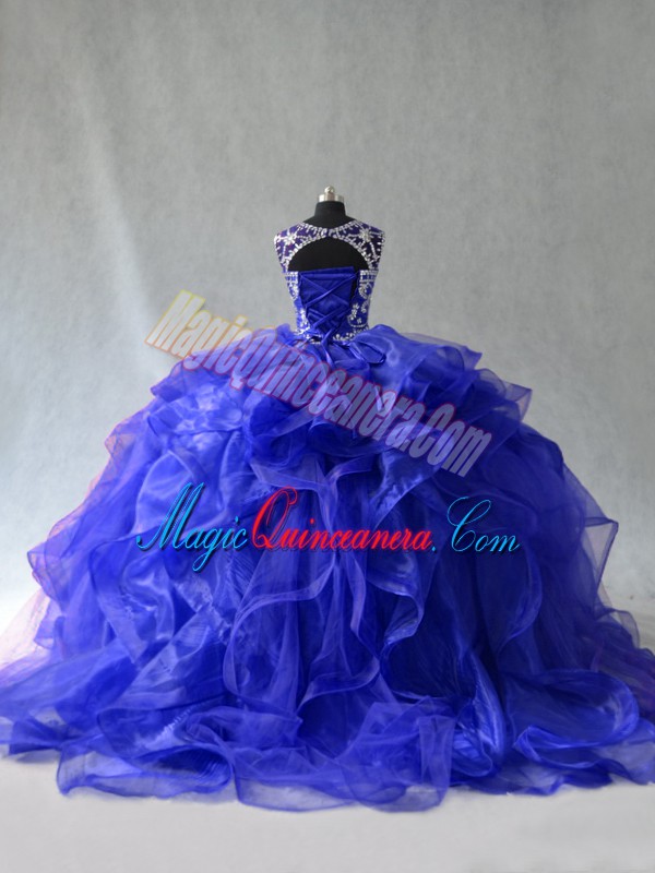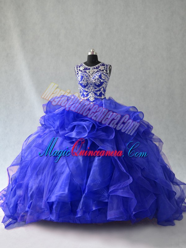 Glittering Royal Blue Sleeveless Floor Length Beading Lace Up Sweet 16 Dresses