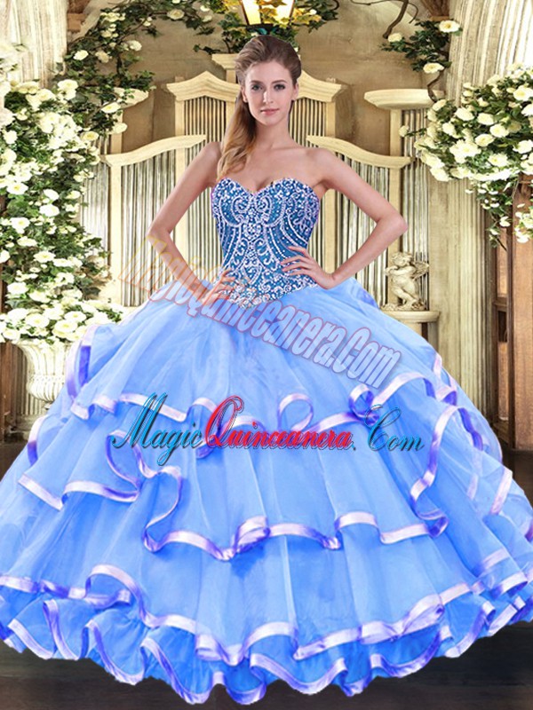 Glittering Sleeveless Lace Up Floor Length Beading and Ruffled Layers Vestidos de Quinceanera