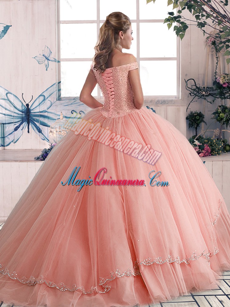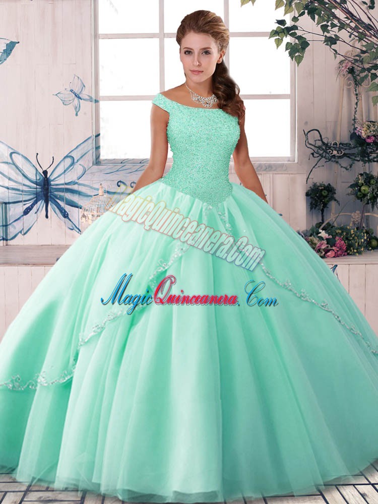 Glorious Apple Green Ball Gown Prom Dress Off The Shoulder Sleeveless Brush Train Lace Up