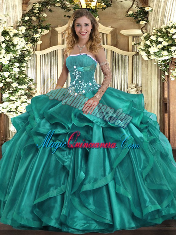 , Glorious Floor Length Ball Gowns Sleeveless Turquoise Ball Gown Prom Dress Lace Up
