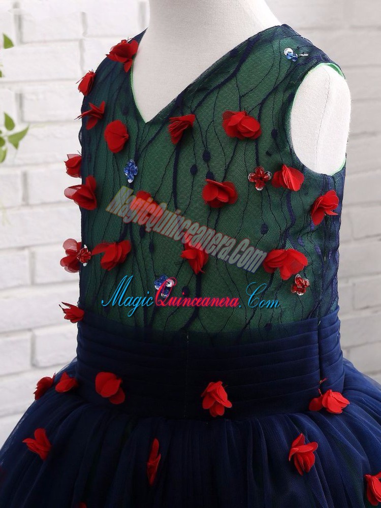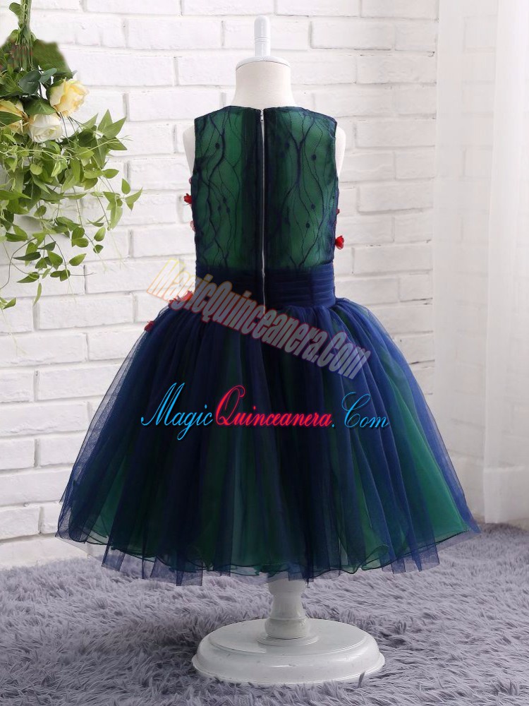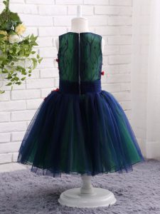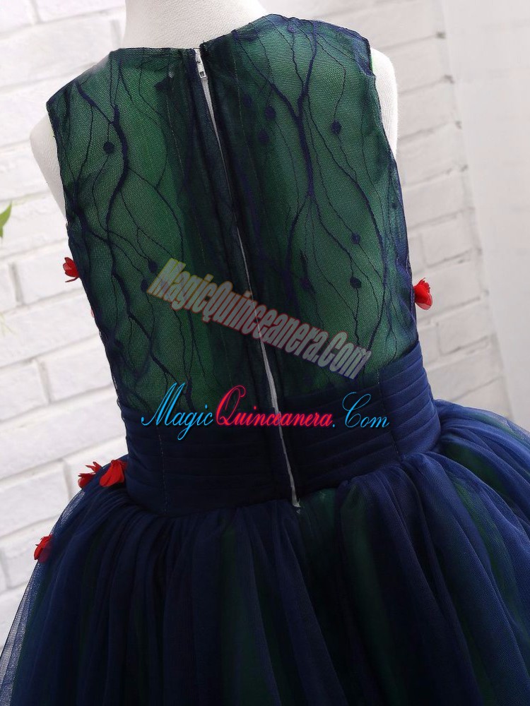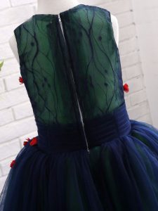 Glorious Lace and Appliques Pageant Gowns For Girls Navy Blue Zipper Sleeveless Knee Length