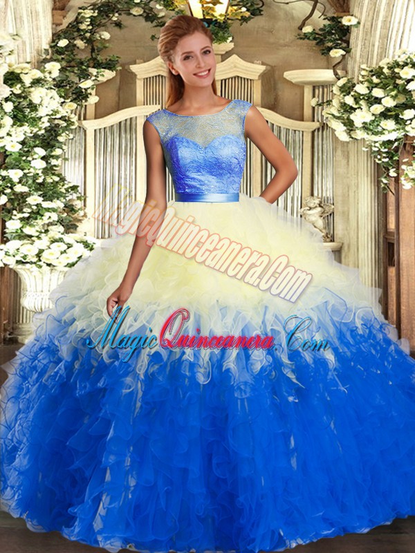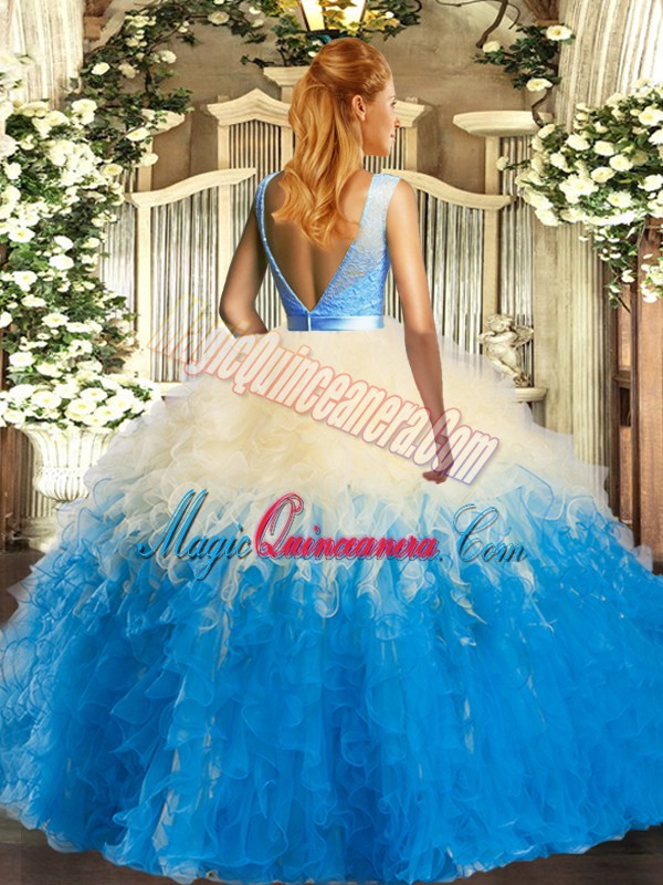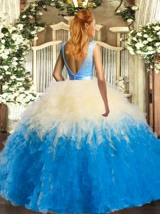 Glorious Multi-color Backless Sweet 16 Dresses Beading and Ruffles Sleeveless Floor Length