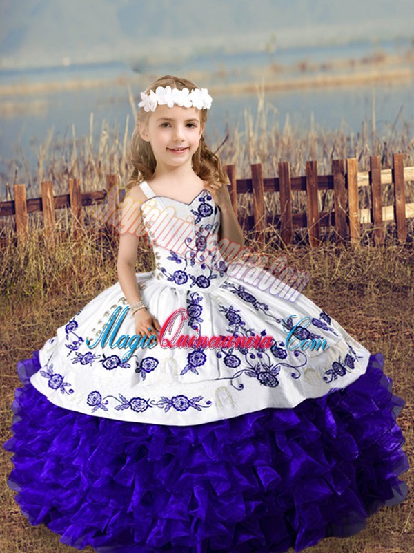 Glorious Purple Straps Neckline Embroidery and Ruffles Little Girls Pageant Gowns Sleeveless Lace Up