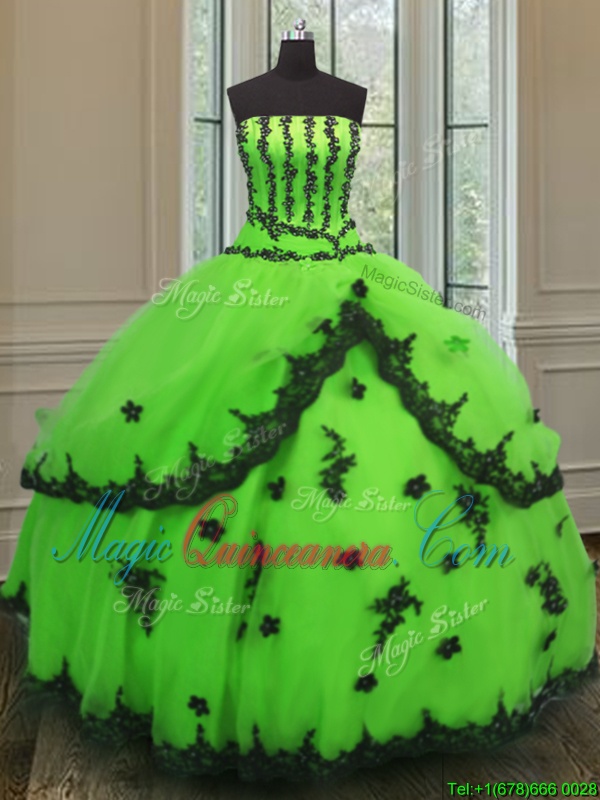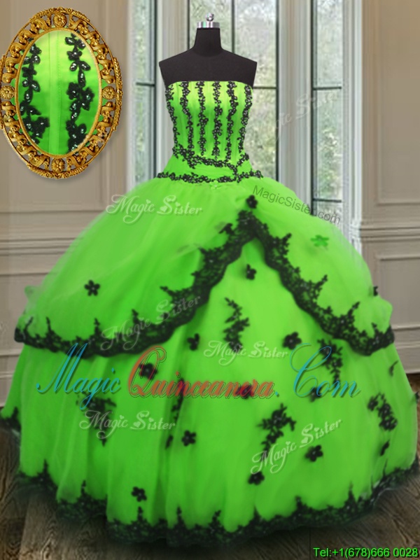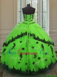 , Glorious Sleeveless Floor Length Appliques Lace Up Quinceanera Gowns