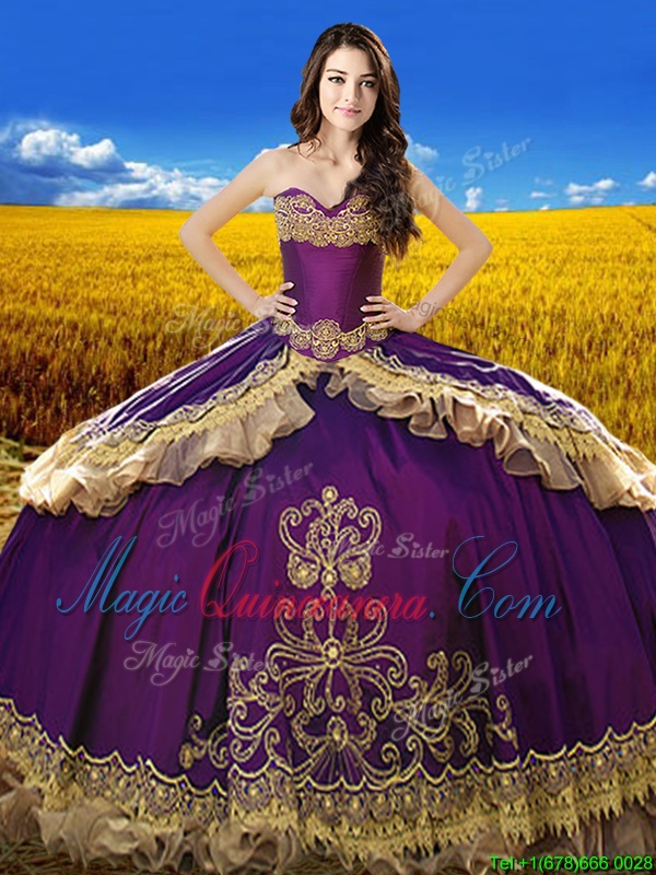 Glorious Sleeveless Floor Length Beading and Embroidery Lace Up Quinceanera Gowns with Eggplant Purple