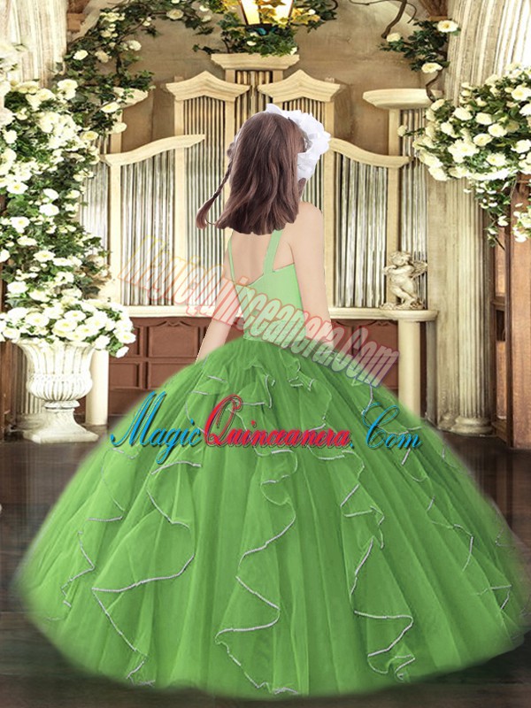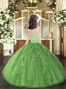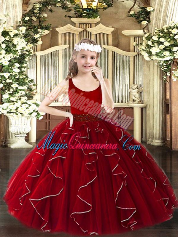 Glorious Wine Red Organza Zipper Pageant Dress Sleeveless Floor Length Beading and Ruffles