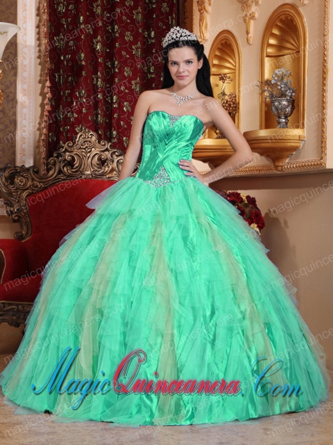 Gorgeous Apple Green Ball Gown Sweetheart Tulle Beading Quinceanera Dress