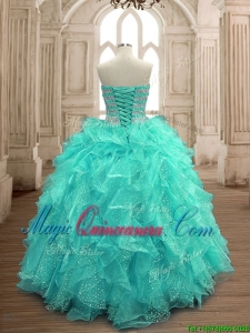 Gorgeous Beaded and Ruffled Big Puffy Sweet 16 Dress in Turquoise