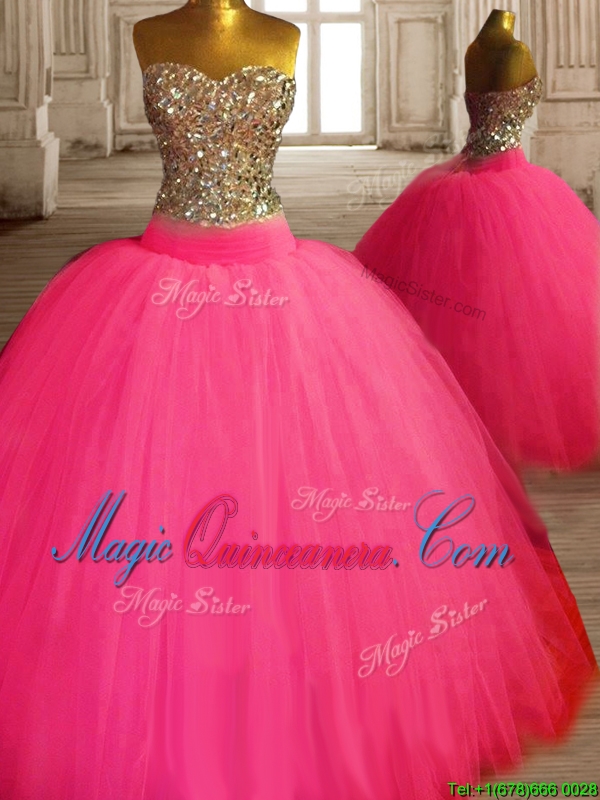 Gorgeous Beaded Bodice Tulle Sweet 16 Dress in Hot Pink
