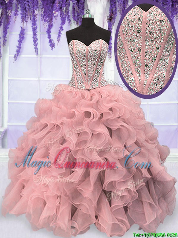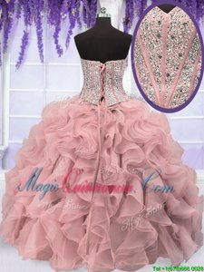, Gorgeous Organza Sleeveless Floor Length Sweet 16 Dress and Beading and Ruffles