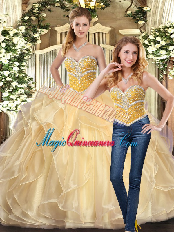 Gorgeous Organza Sleeveless Floor Length Sweet 16 Quinceanera Dress and Beading and Ruffles