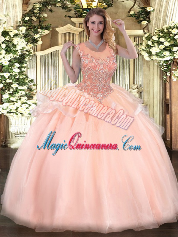 Gorgeous Peach Sleeveless Organza Zipper Sweet 16 Quinceanera Dress for Military Ball and Sweet 16 and Quinceanera