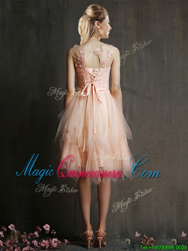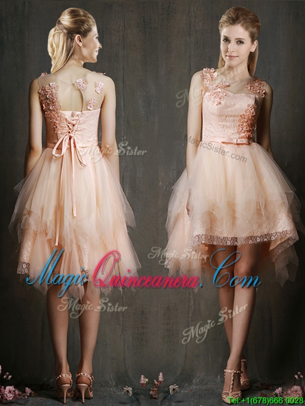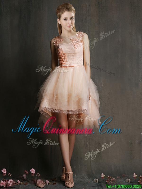 Gorgeous Scoop High Low Dama Dress with Appliques and Belt