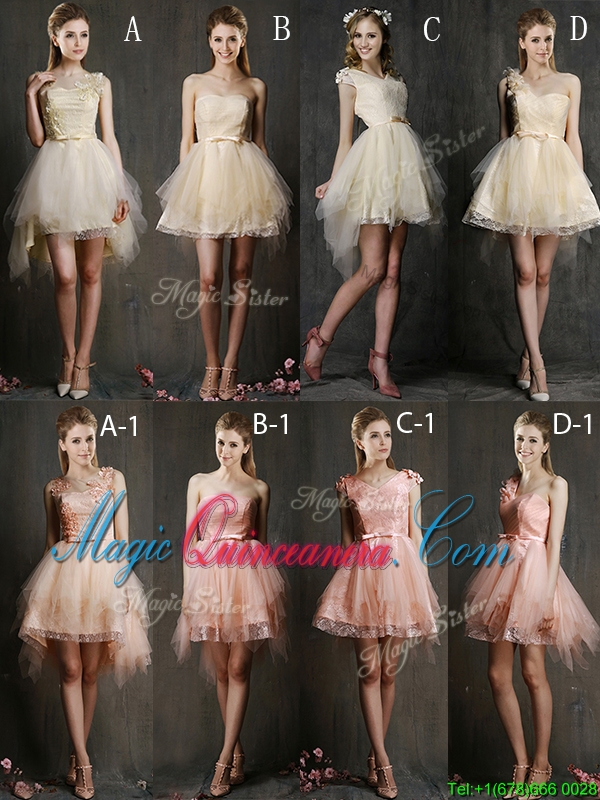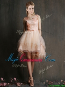 , Gorgeous Scoop High Low Dama Dress with Appliques and Belt