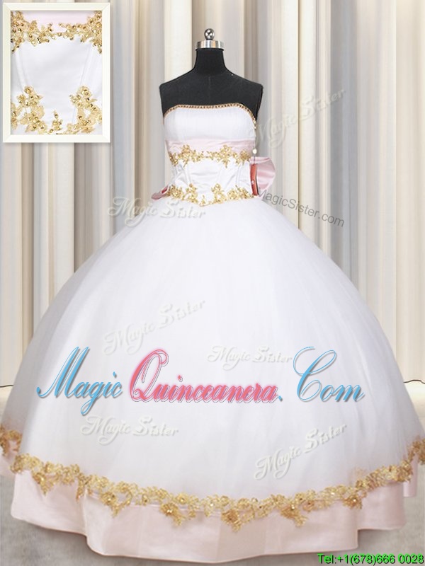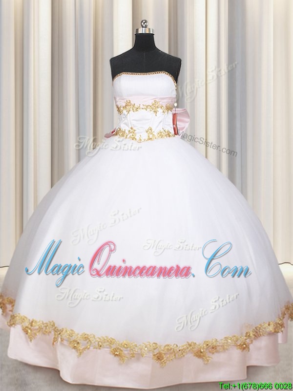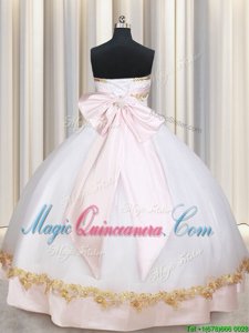 Gorgeous Sleeveless Satin Floor Length Lace Up Quinceanera Gown in White for with Beading and Appliques and Bowknot