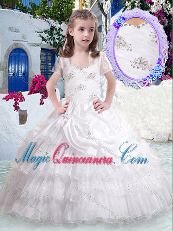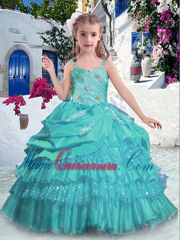 Gorgeous Straps Little Girl Pageant Dresses with Ruffled Layers and Beading