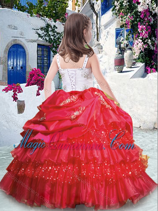 , Gorgeous Straps Little Girl Pageant Dresses with Ruffled Layers and Beading