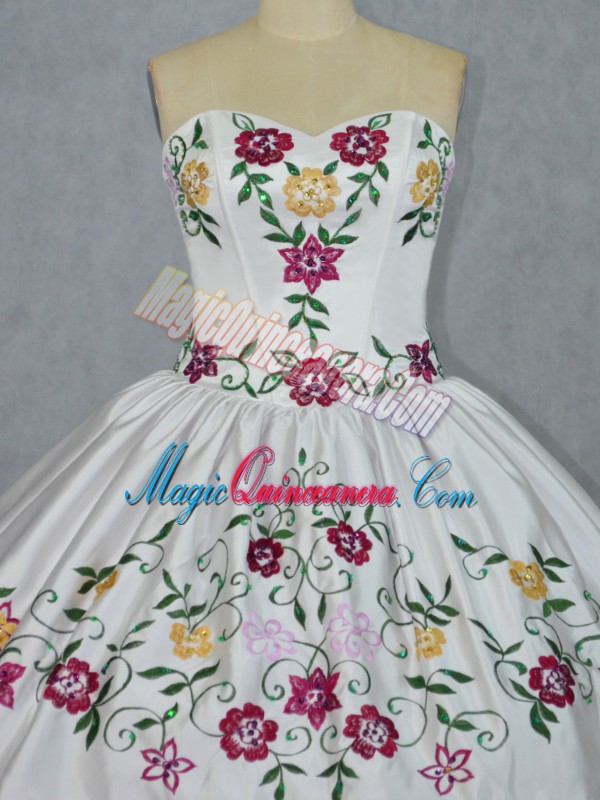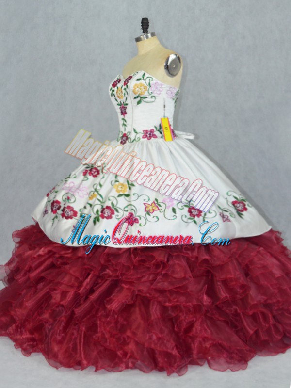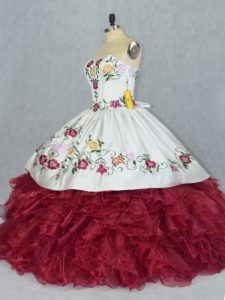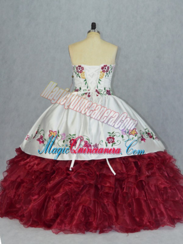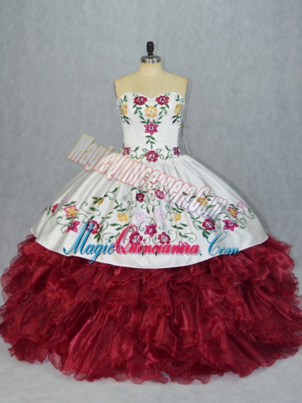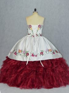 Gorgeous Sweetheart Sleeveless 15 Quinceanera Dress Floor Length Embroidery and Ruffles White And Red Organza