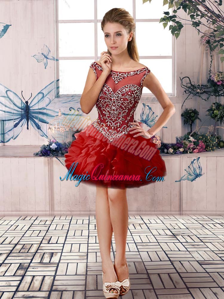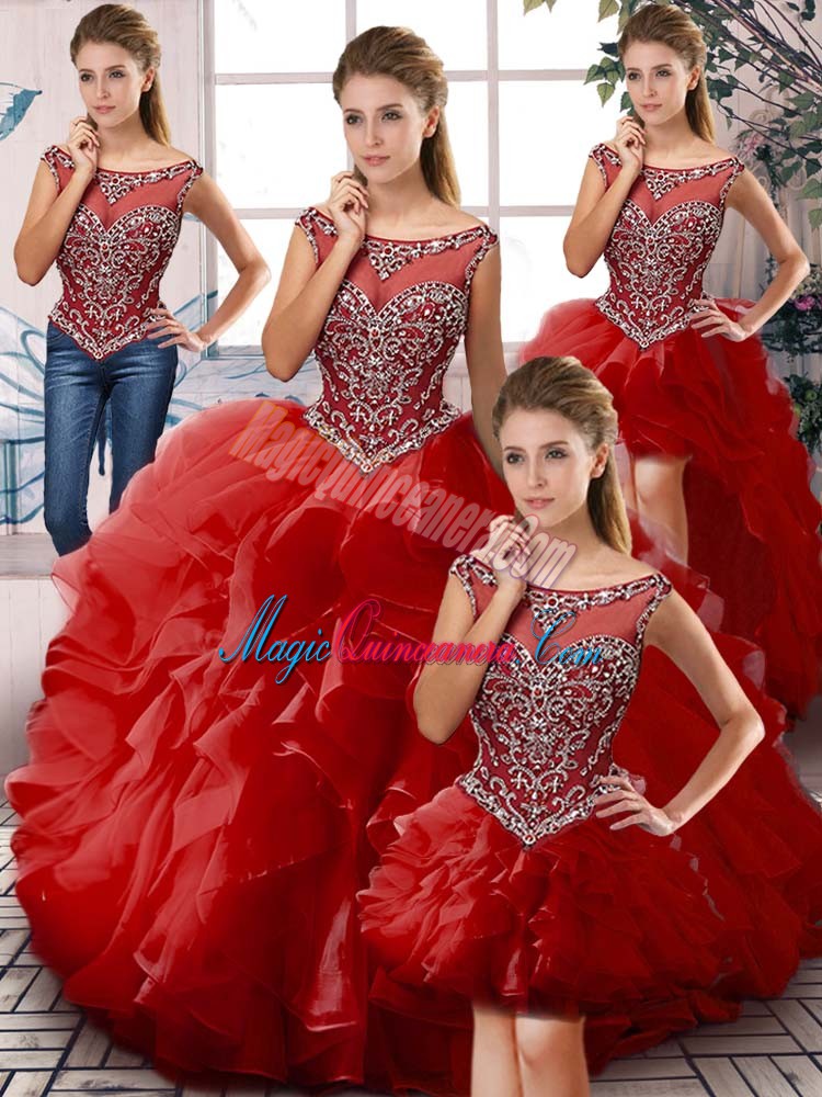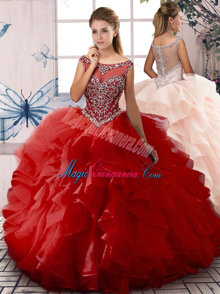 , Graceful Ball Gowns Sweet 16 Dress Red Scoop Organza Sleeveless Floor Length Zipper