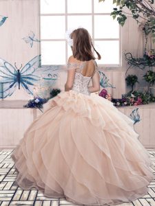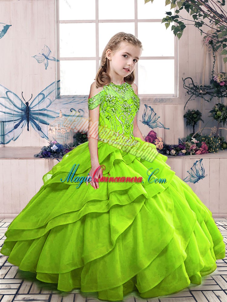Graceful Floor Length Little Girls Pageant Dress Wholesale Organza Sleeveless Beading