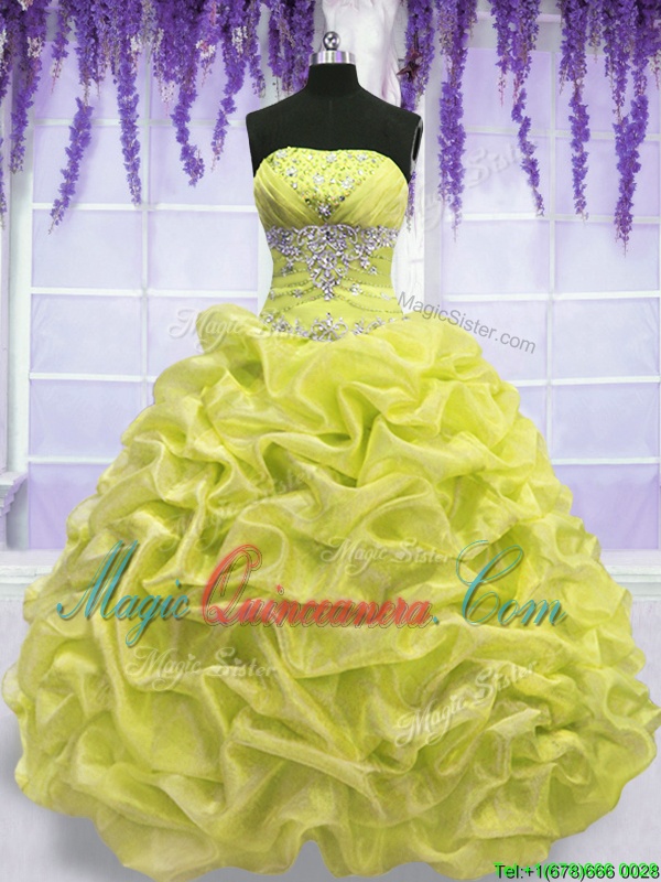 Graceful Strapless Sleeveless Organza Quinceanera Dresses Beading Lace Up