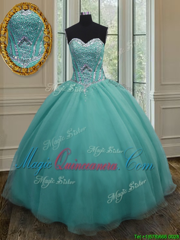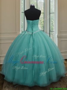 , Graceful Turquoise Quince Ball Gowns Military Ball and Sweet 16 and Quinceanera and For with Beading Sweetheart Sleeveless Lace Up