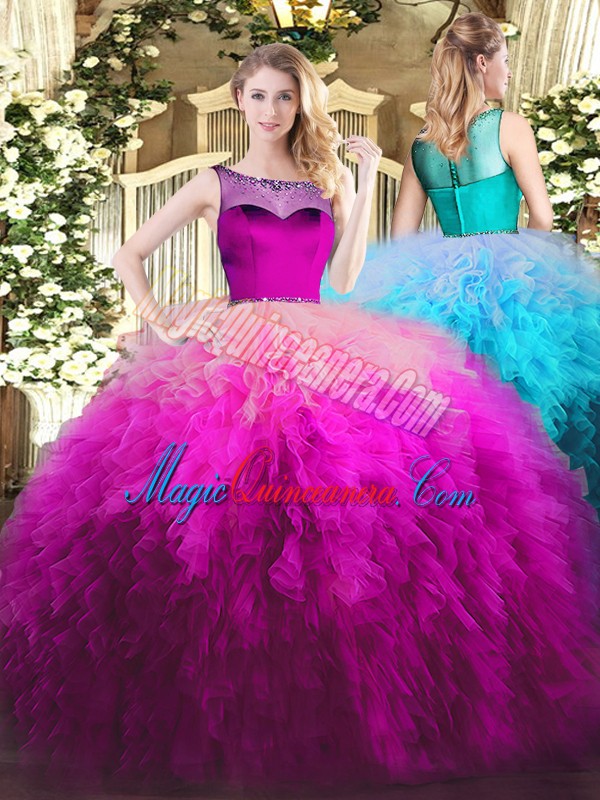 Great Fuchsia Sleeveless Tulle Zipper Quinceanera Gown for Sweet 16 and Quinceanera