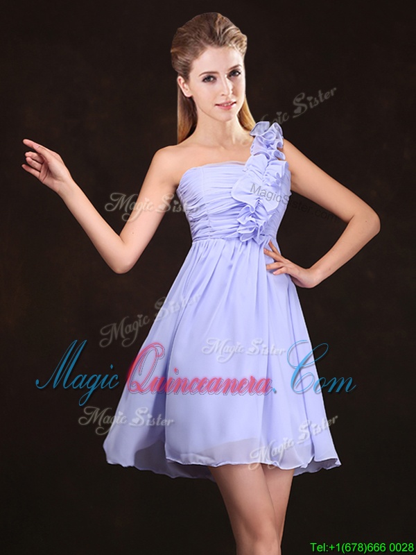 , Great Mini Length Lavender Damas Dress One Shoulder Sleeveless Zipper