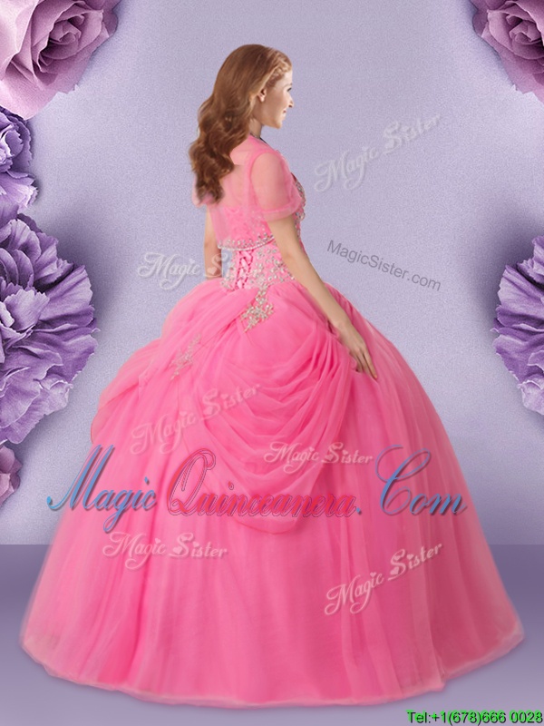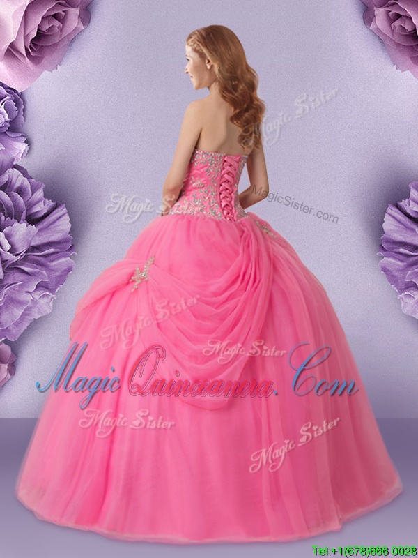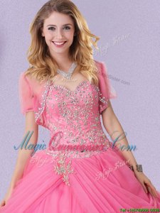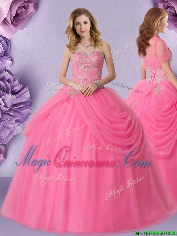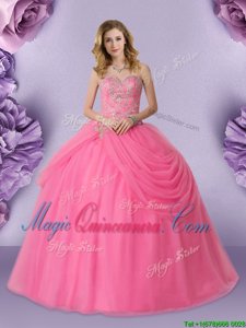 Great Rose Pink Lace Up Sweetheart Beading and Pick Ups Sweet 16 Dresses Tulle Sleeveless
