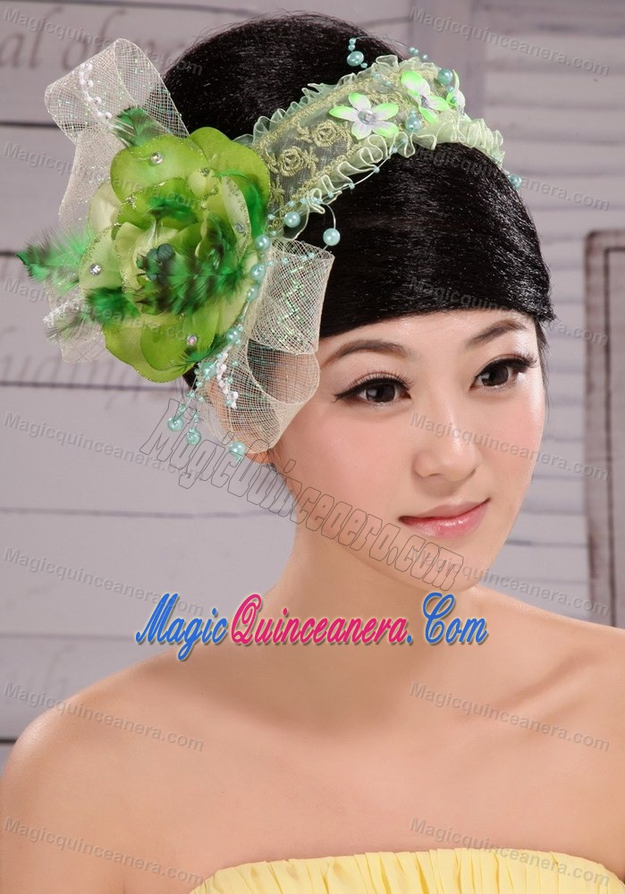 , Green And Fresh Small Laurie Flowers Beading Fascinators For Party