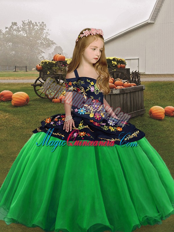 Green Lace Up Pageant Dress Toddler Embroidery Sleeveless High Low