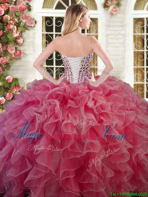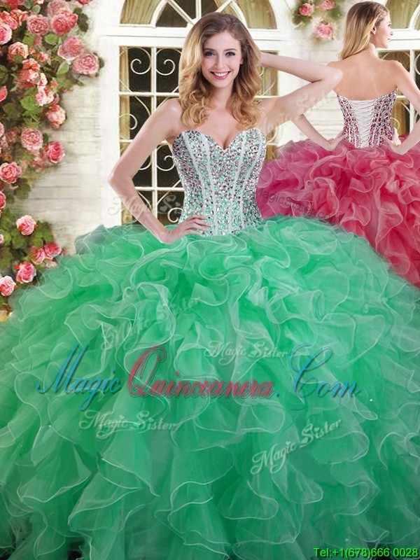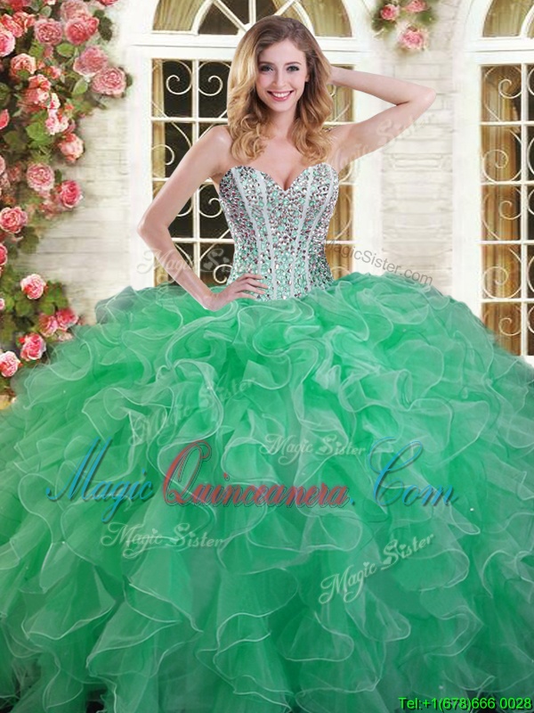 , Green Lace Up Sweetheart Beading and Ruffles Quinceanera Dresses Organza Sleeveless