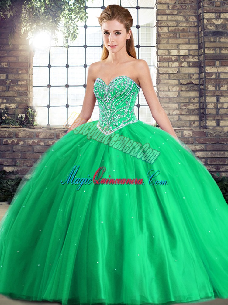 Green Quince Ball Gowns Sweetheart Sleeveless Brush Train Lace Up