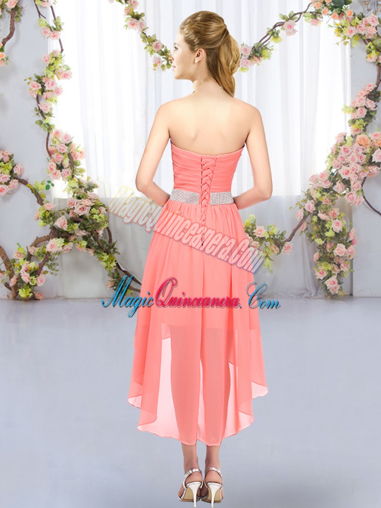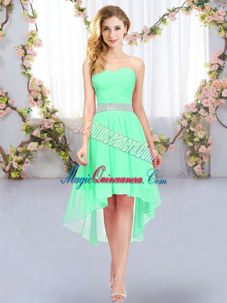 Green Quinceanera Court of Honor Dress Wedding Party with Belt Sweetheart Sleeveless Lace Up