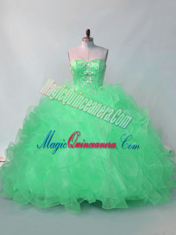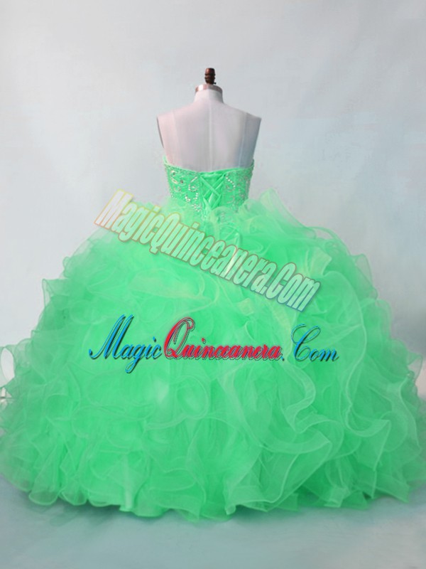 Green Quinceanera Dress Sweet 16 and Quinceanera with Beading and Ruffles Sweetheart Sleeveless Lace Up