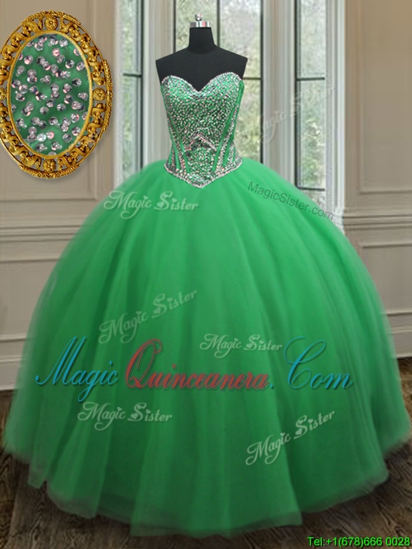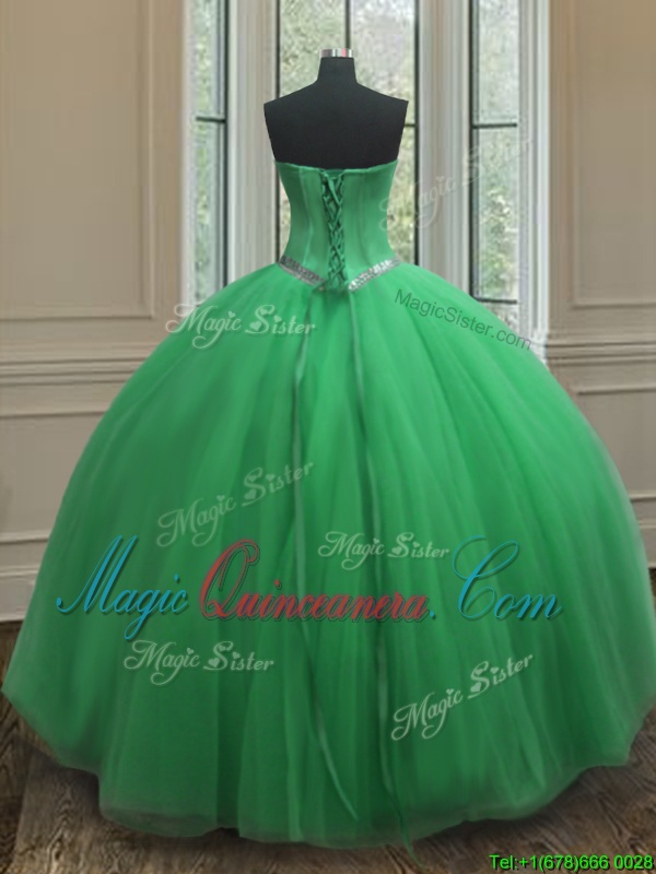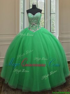 Green Sleeveless Floor Length Beading Lace Up Sweet 16 Dress