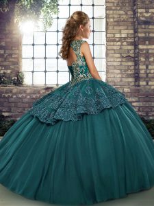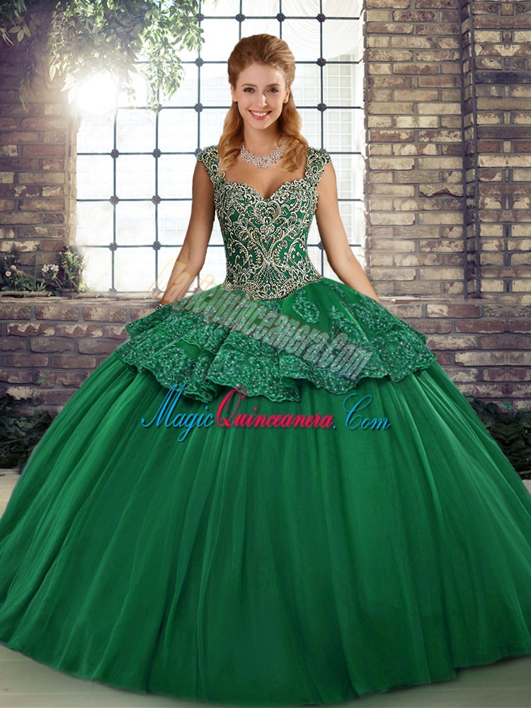 Green Sleeveless Tulle Lace Up 15 Quinceanera Dress for Military Ball and Sweet 16 and Quinceanera