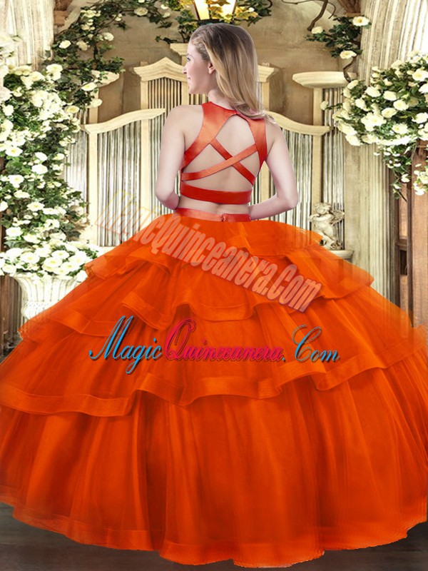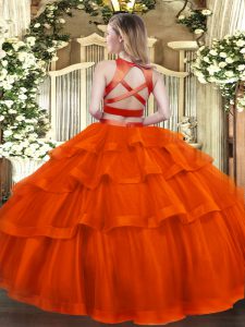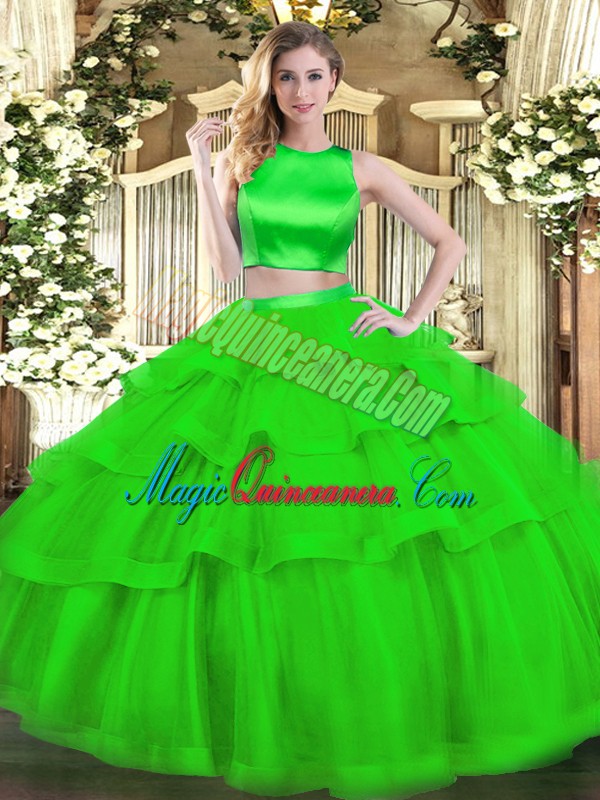 Green Tulle Criss Cross High-neck Sleeveless Floor Length Sweet 16 Dress Ruffled Layers
