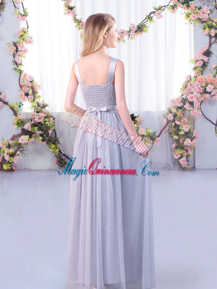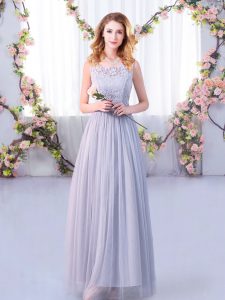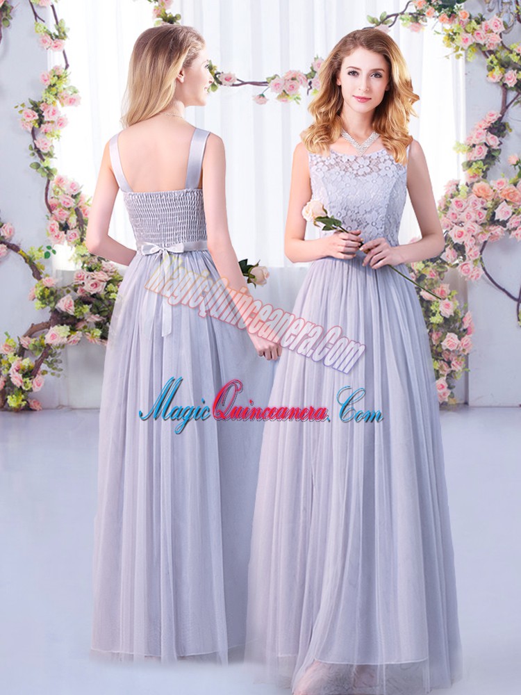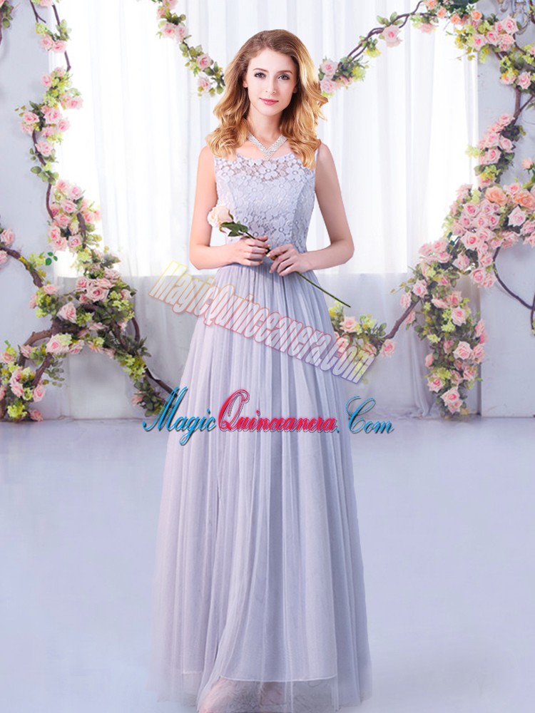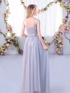 , Grey Sleeveless Lace and Belt Floor Length Court Dresses for Sweet 16
