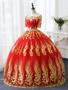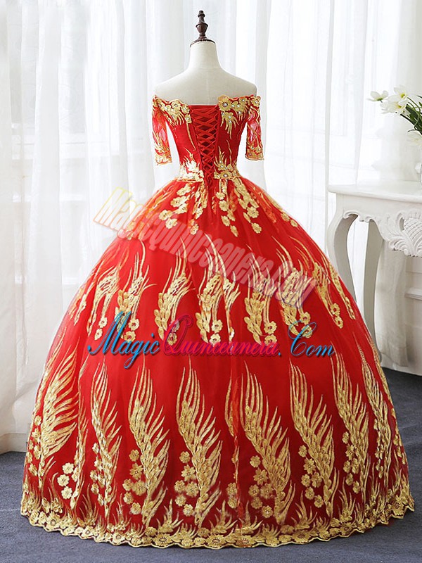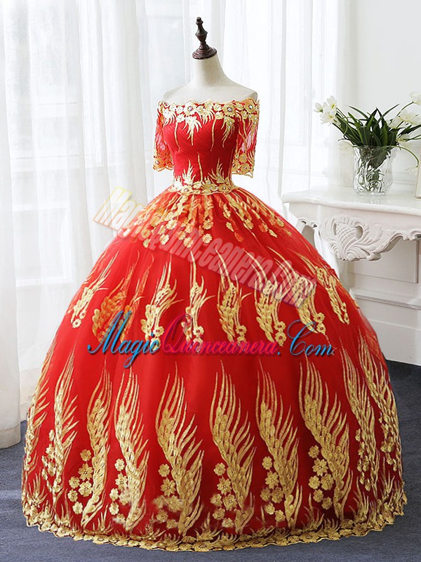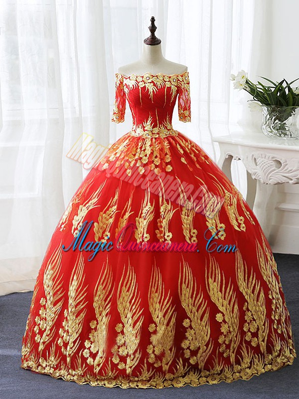 Half Sleeves Lace Up Floor Length Appliques Quinceanera Dresses