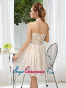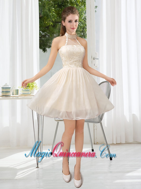 exclusive 15 dresses for damas with lace up back, Halter Appliques Lace Up Dama Dress in Champagne