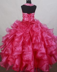 halter ball gown little girls pageant dresses, Halter Flower Girl Pageant Dress With Beading and Ruffled Layers