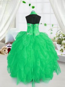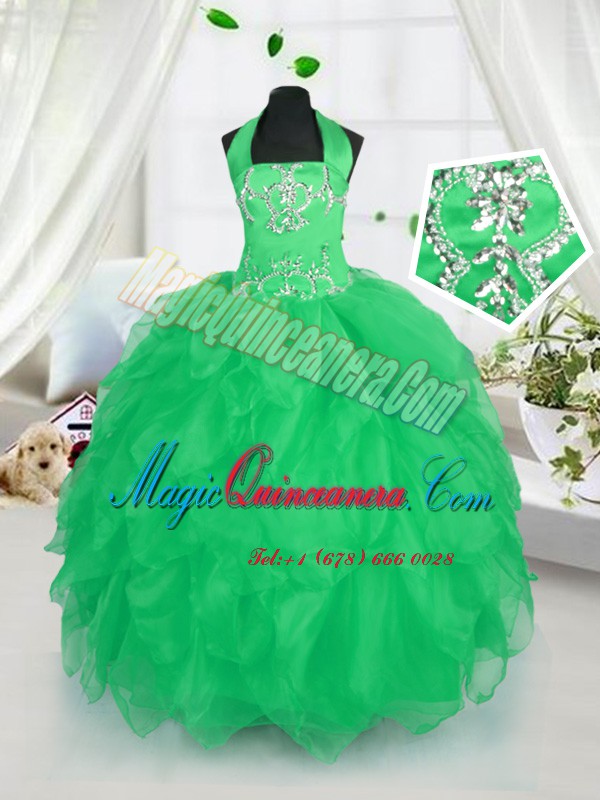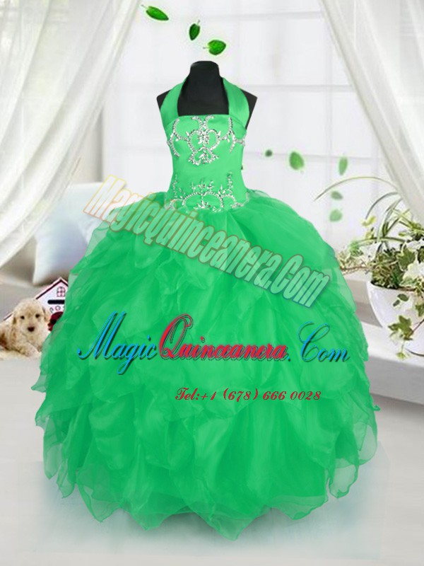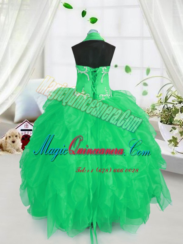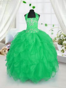 Halter Top Apple Green Sleeveless Organza Lace Up Winning Pageant Gowns for Party and Wedding Party