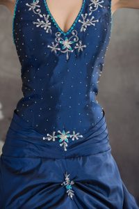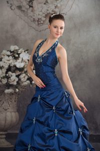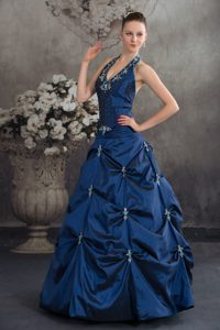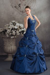 Halter Top Navy Blue Beaded Appliqued Quinceanera Dresses