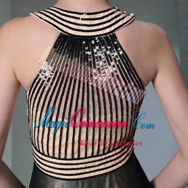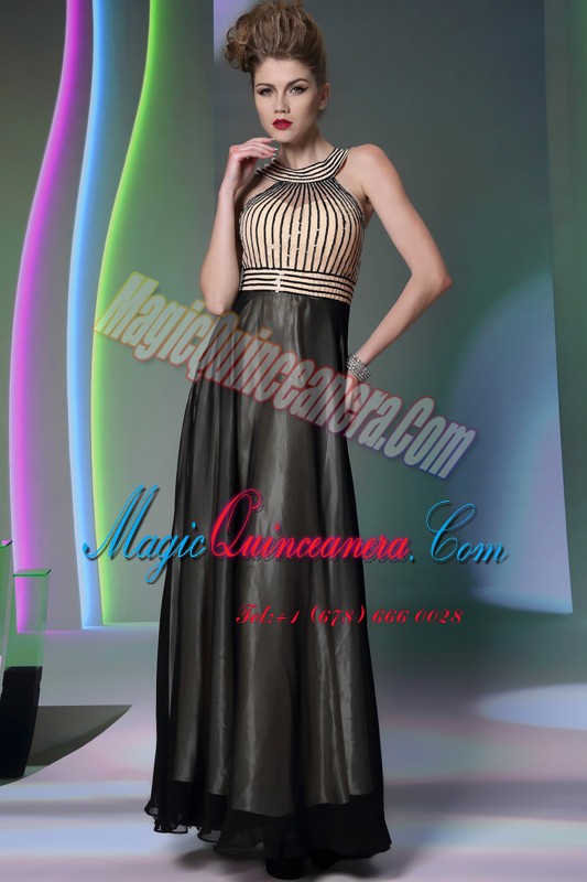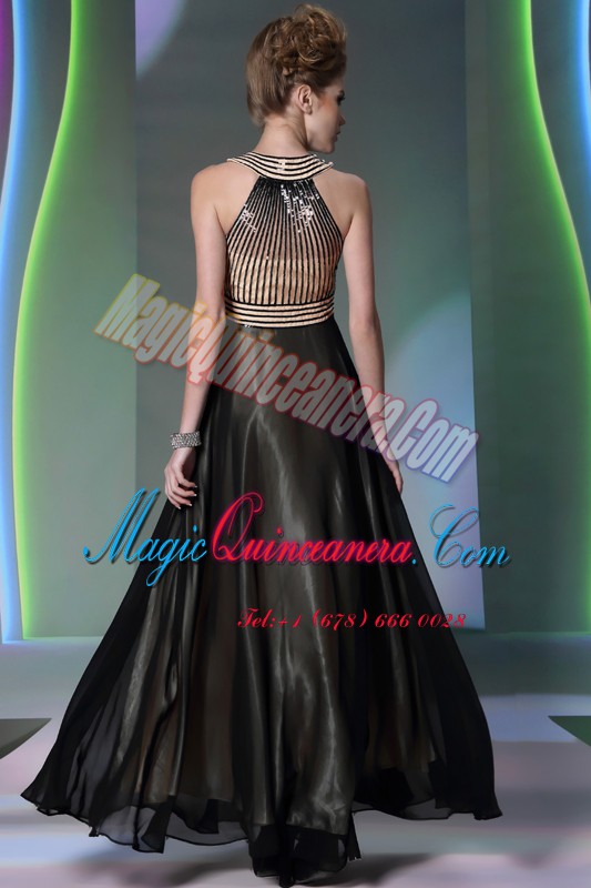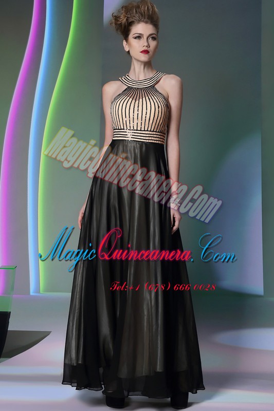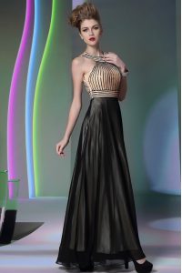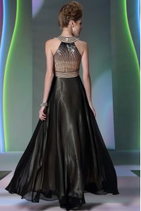 Halter Top Sleeveless Side Zipper Mother Of The Bride Dress Black Chiffon