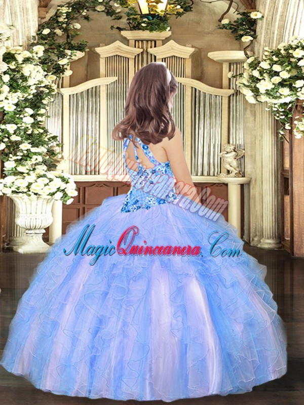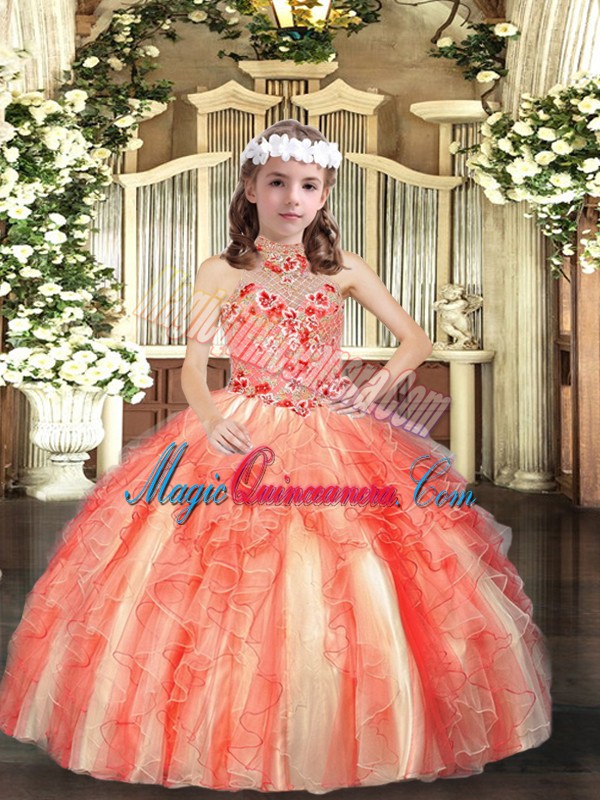 Halter Top Sleeveless Tulle Little Girl Pageant Gowns Appliques and Ruffles Lace Up