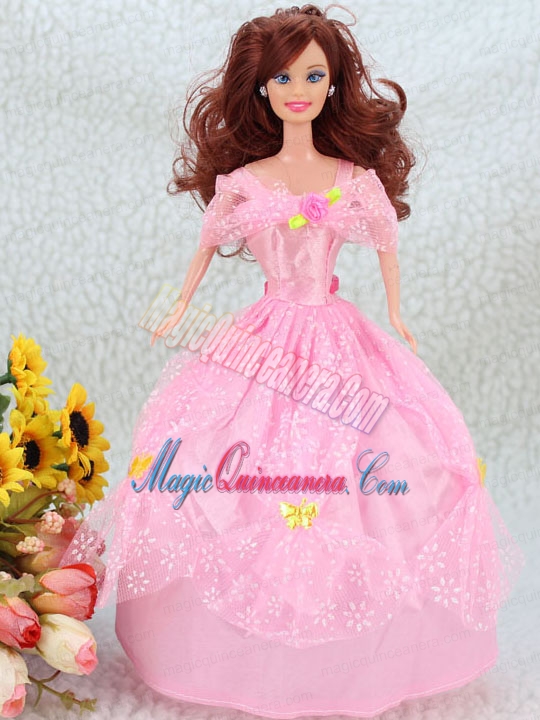 , Hand Made Flower Pink Ball Gown Party Clothes Barbie Doll Dress