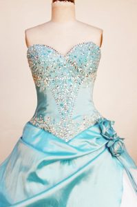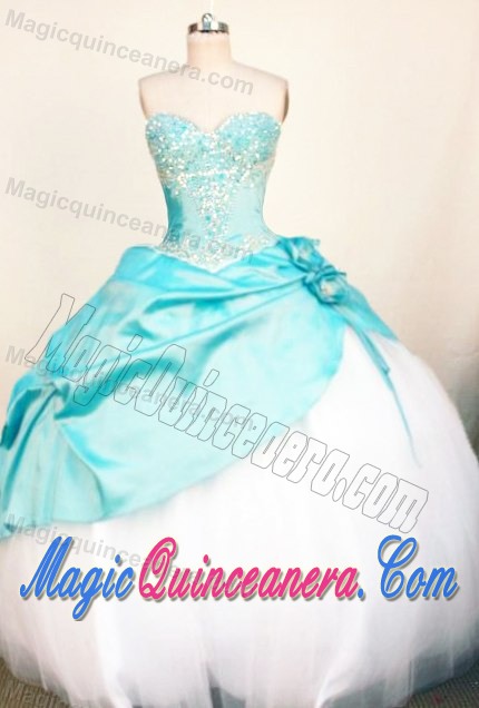 Hand Made Made Flower and Beading Sweetheart Light Blue and White Dresses 15