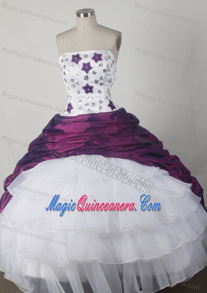 romantic strapless real sample quinceanera dresses in cambyreta, Heavy Stars Ball Gown Sweet Sixteen Dresses in White and Purple